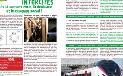 Depuis toujours, les ADC des trains INTERCITÉS font figure de parents pauvres par rapport aux autres activités. Pourtant, la technicité requise, le travail de nuit et les conditions de travail dégradées à cause de la vétusté du matériel du parc ordinaire devrait se traduire par une juste (…)