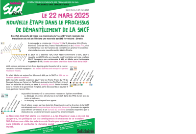 Vous trouverez ci-joint le dernier tract de la Fédération SUD-Rail concernant le nouveau découpage et le calendrier des lots Transilien en Île-de-France, soumis au vote du CA d’Île-de-France Mobilités le 17 octobre 2025.