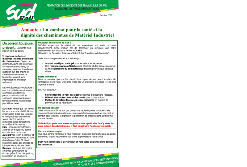 Il continue de tuer et d’abîmer la santé de milliers de cheminot-es. Depuis des décennies, dans nos ateliers de maintenance ferroviaire, on manipule, répare et travaille au quotidien sur des engins et