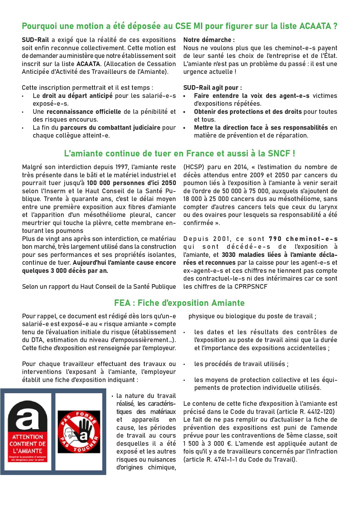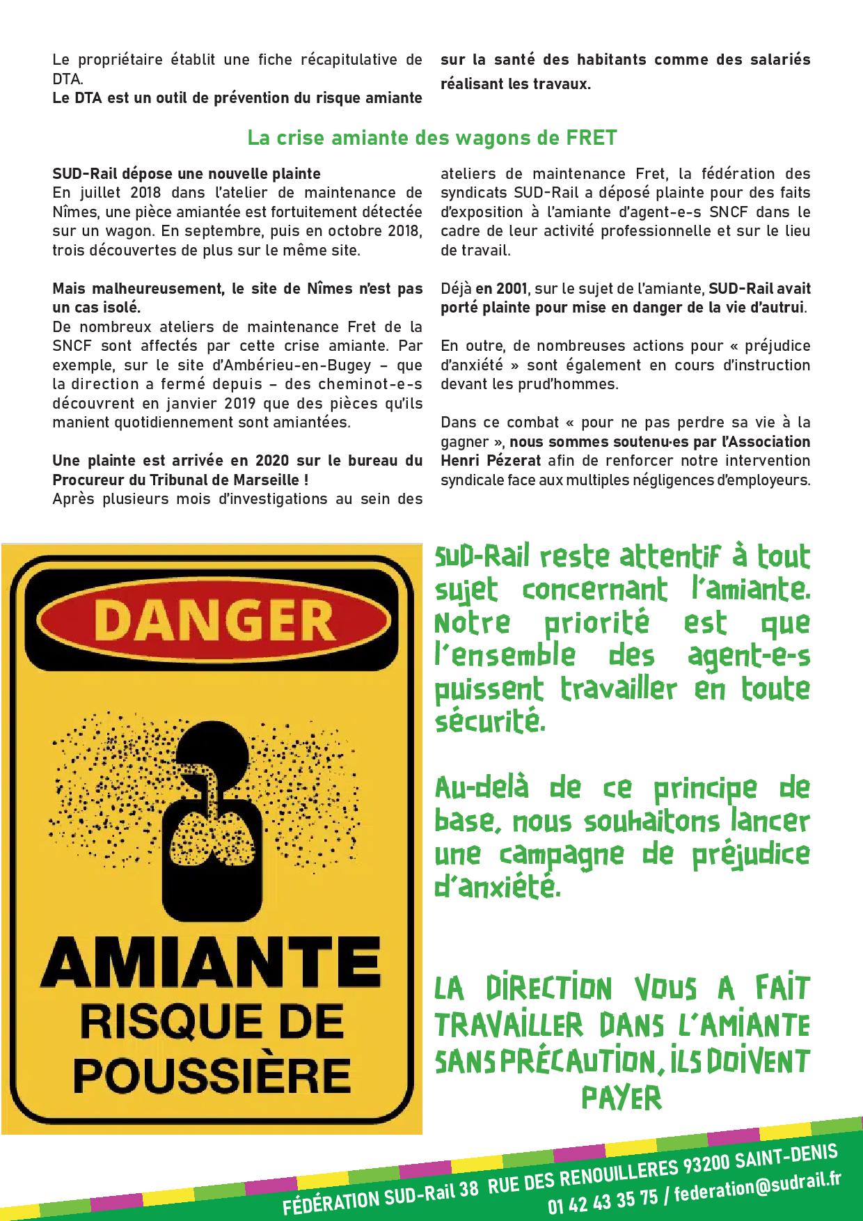 SUD-Rail reste attentif à tout sujet concernant l’amiante. Notre priorité est que l’ensemble des agent-e-s puissent travailler en toute sécurité.