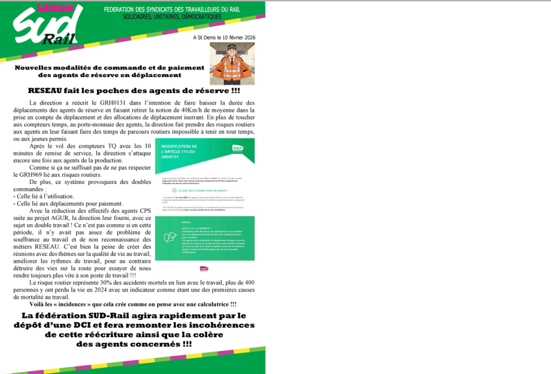 La fédération SUD-Rail agira rapidement par le dépôt d’une DCI et fera remonter les incohérences de cette réécriture ainsi que la colère des agents concernés !!!