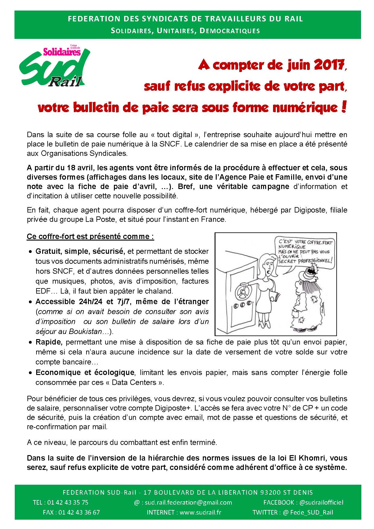 Dans la suite de sa course folle au « tout digital », l’entreprise souhaite aujourd‘hui mettre en place le bulletin de paie numérique à la SNCF. Le calendrier de sa mise en place a été présenté aux Organisations Syndicales.