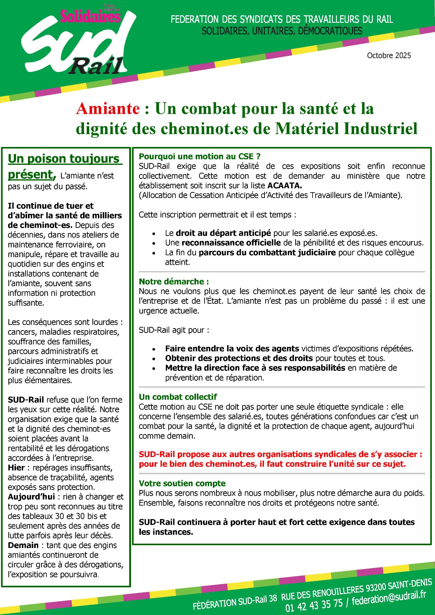 Il continue de tuer et d’abîmer la santé de milliers de cheminot-es. Depuis des décennies, dans nos ateliers de maintenance ferroviaire, on manipule, répare et travaille au quotidien sur des engins et