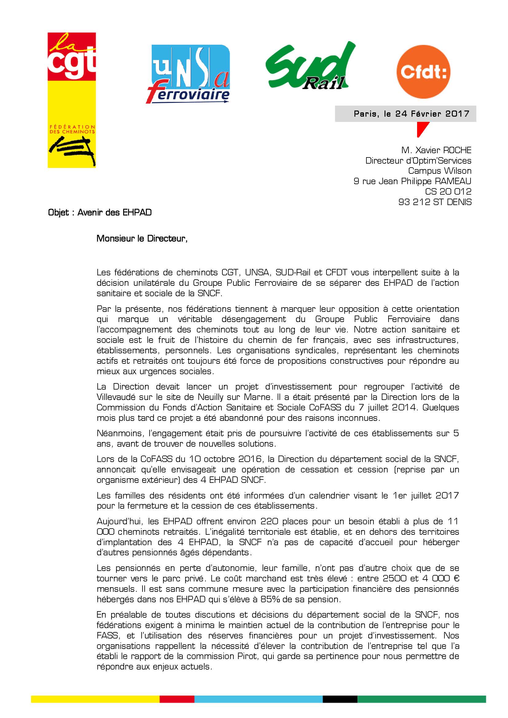 Les fédérations de cheminots CGT, UNSA, SUD-Rail et CFDT vous interpellent suite à la décision unilatérale du Groupe Public Ferroviaire de se séparer des EHPAD de l’action sanitaire et sociale de la SNCF.