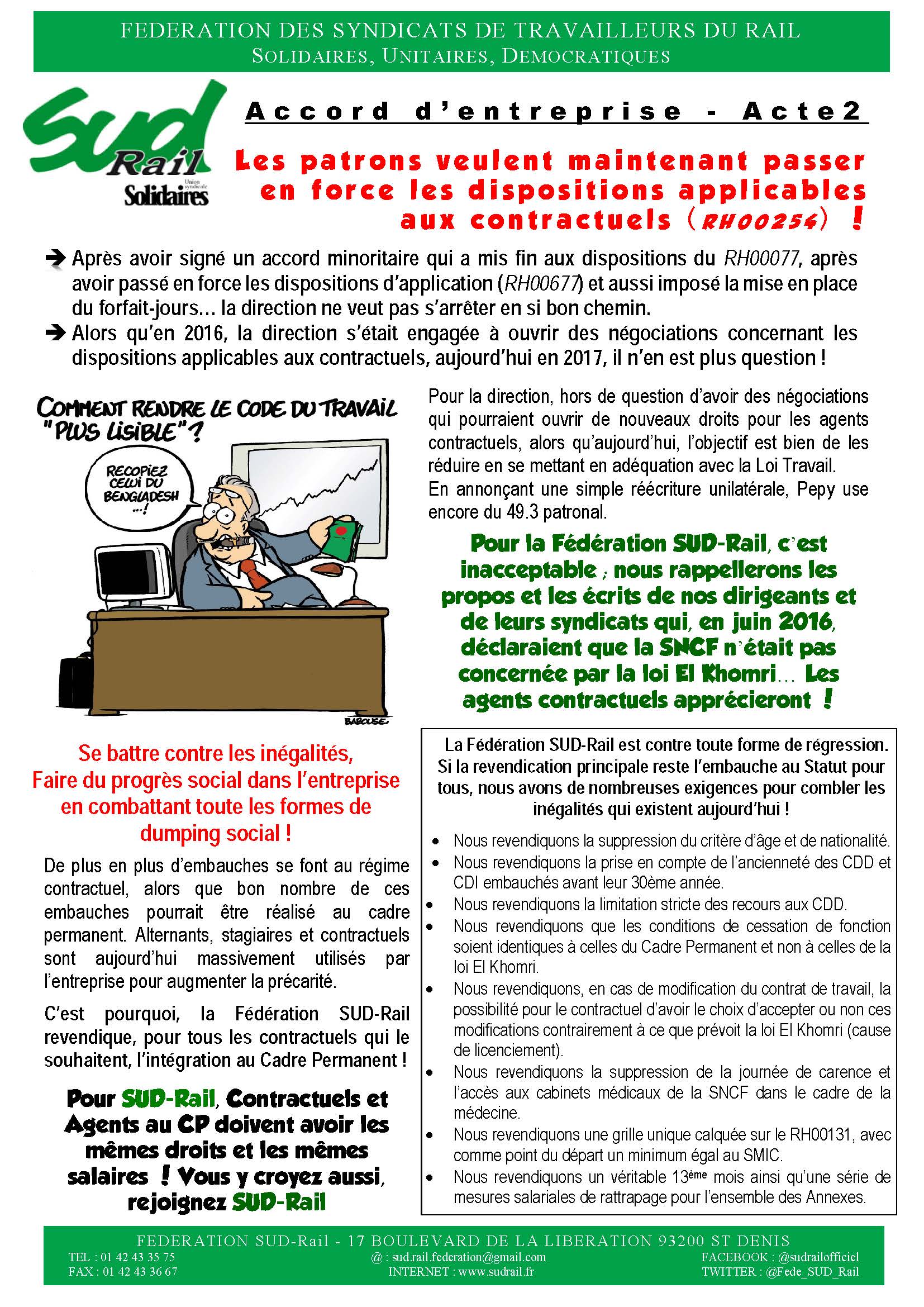 Pour la Fédération SUD-Rail, c’est inacceptable ; nous rappellerons les propos et les écrits de nos dirigeants et de leurs syndicats qui, en juin 2016, déclaraient que la SNCF n’était pas concernée par la loi El Khomri… Les agents contractuels apprécieront !
