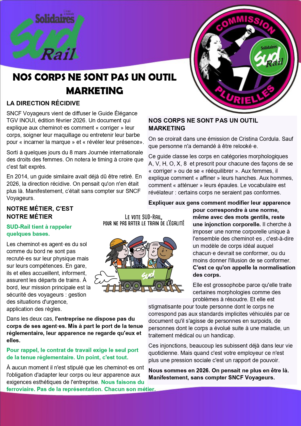 C’est l’intervention de SUD-Rail auprès de la direction, largement reprise dans la presse, qui a obtenu le retrait du Guide Élégance TGV INOUI.