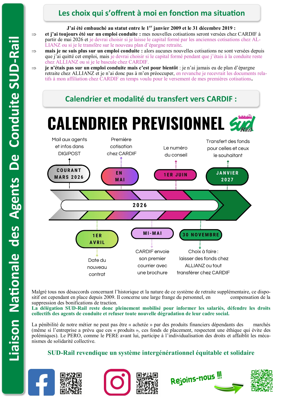 SUD-Rail s’est opposé à la contre-réforme des retraites de 2008 et à ses conséquences, et réaffirme son opposition à toute logique de capitalisation des retraites. Certains ont choisi de négocier la perte de droits des jeunes conducteurs en échange du maintien des droits pour d’autres... Cette trahison a ainsi entraîné la suppression des 5 ans de bonification traction pour les agents concernés.