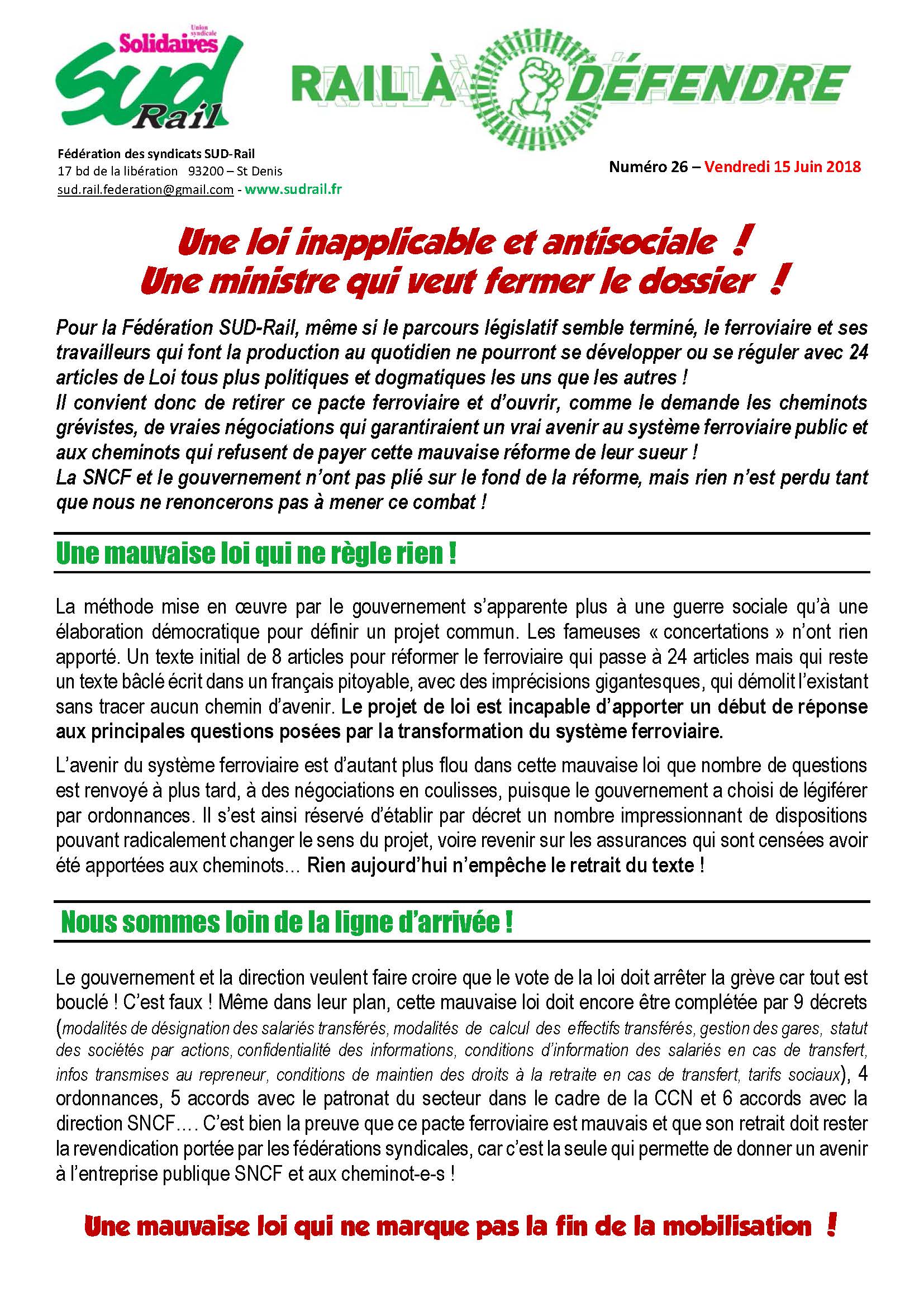 Le gouvernement et la direction veulent faire croire que le vote de la loi doit arrêter la grève car tout est bouclé ! C’est faux ! Même dans leur plan, cette mauvaise loi doit encore être complétée par 9 décrets (modalités de désignation des salariés transférés, modalités de calcul des effectifs transférés, gestion des gares, statut des sociétés par actions, confidentialité des informations, conditions d’information des salariés en cas de transfert, infos transmises au repreneur, conditions de maintien des droits à la retraite en cas de transfert, tarifs sociaux), 4 ordonnances, 5 accords avec le patronat du secteur dans le cadre de la CCN et 6 accords avec la direction SNCF…. C’est bien la preuve que ce pacte ferroviaire est mauvais et que son retrait doit rester la revendication portée par les fédérations syndicales, car c’est la seule qui permette de donner un avenir à l’entreprise publique SNCF et aux cheminot-e-s !