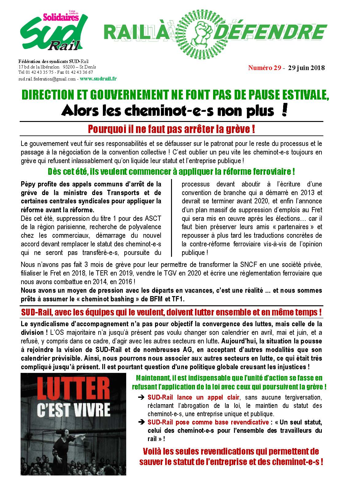 – SUD-Rail lance un appel clair, sans aucune tergiversation, réclamant l’abrogation de la loi, le maintien du statut des cheminot-e-s, une entreprise unique et publique.